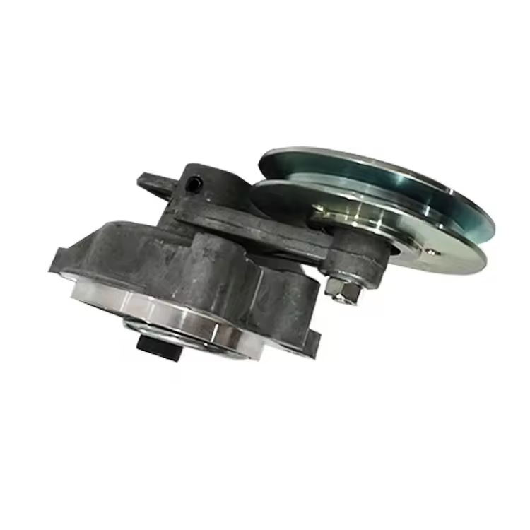 The tensioning wheel is a follower wheel that presses on the belt in order to change the wrap angle of the pulley or control the tension of the belt. It is a belt-driven tensioning device.